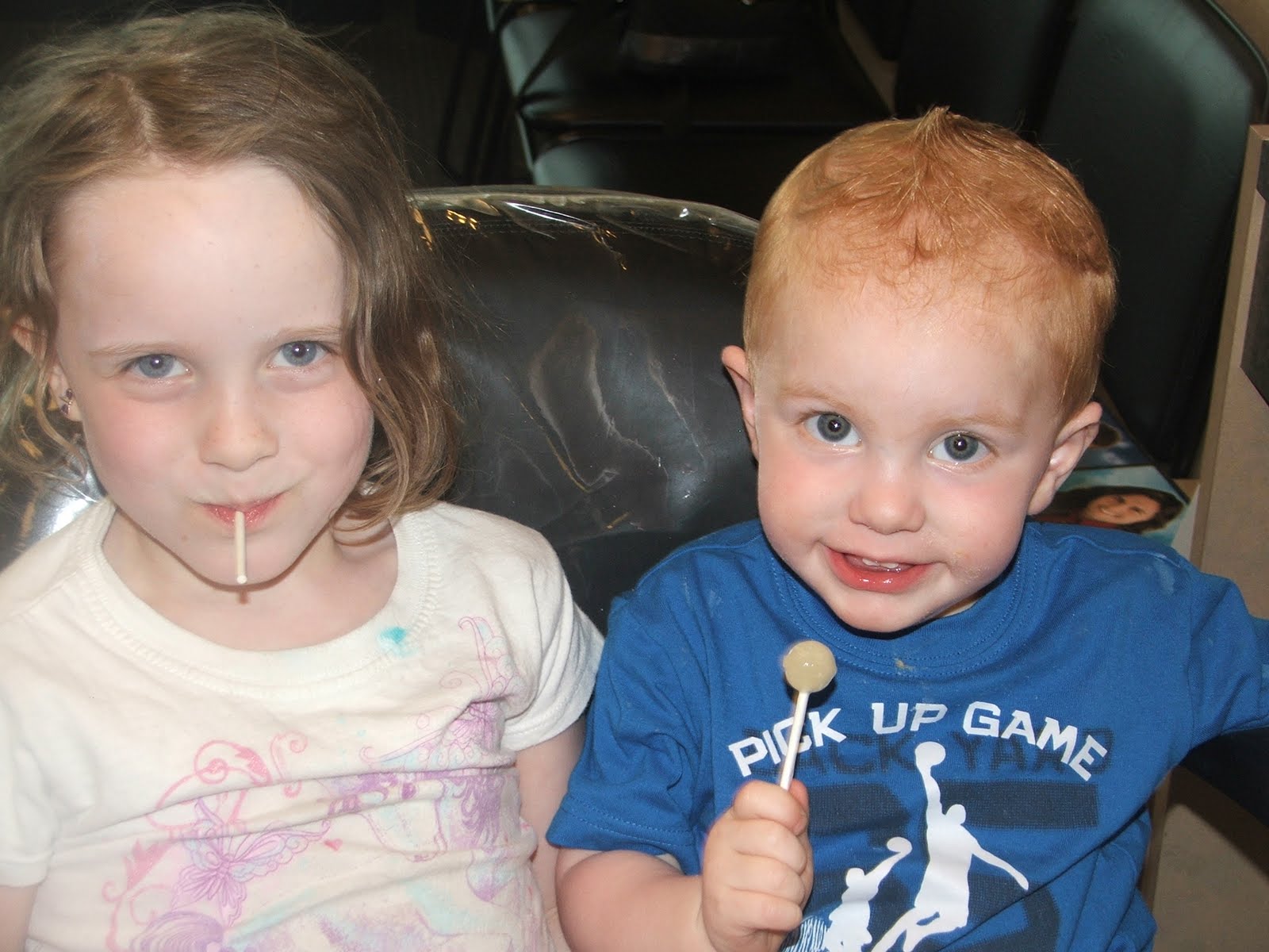 Also, my children decided that sweeping up the cut hair was a fun thing to do. They both just had to have a chance to sweep up the hair-covered floor. Nothing like a little child labor.